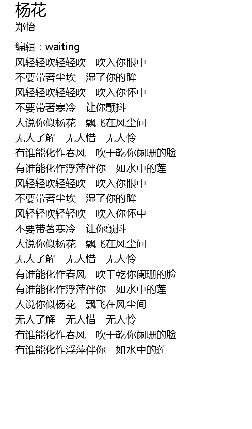 | [00:40.40] | feng qing qing chui qing qing chui chui ru ni huai zhong |