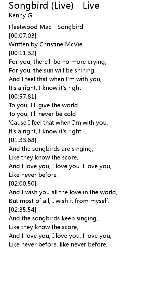 | [00:01.98] | Fleetwood Mac - Songbird |