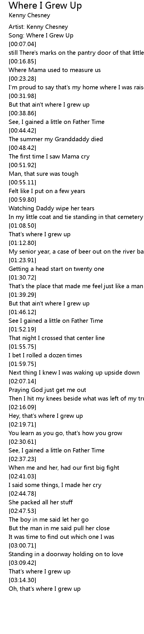 Song: Where I Grew Up |