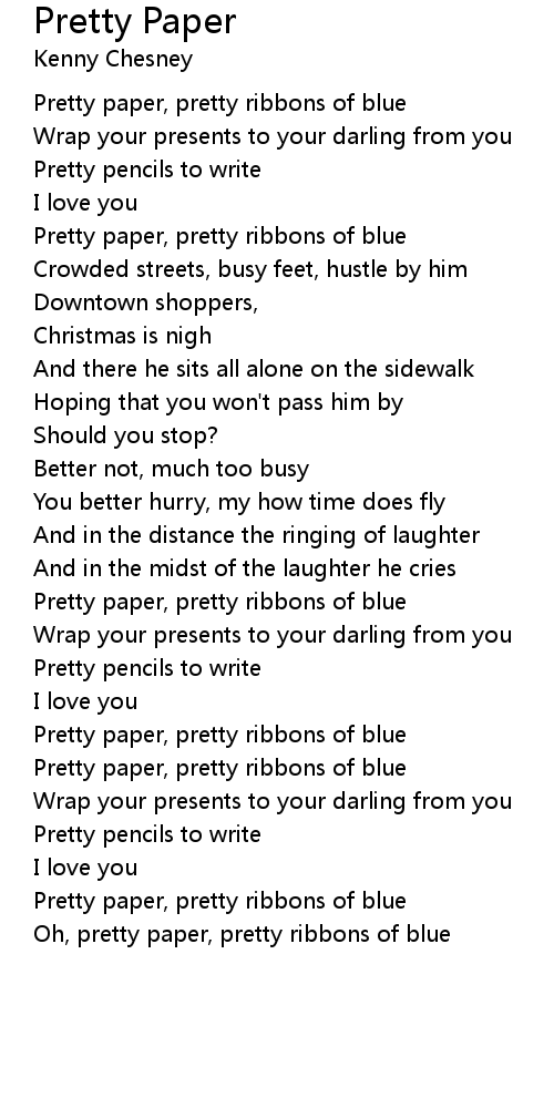 Oh, pretty paper, pretty ribbons of blue |