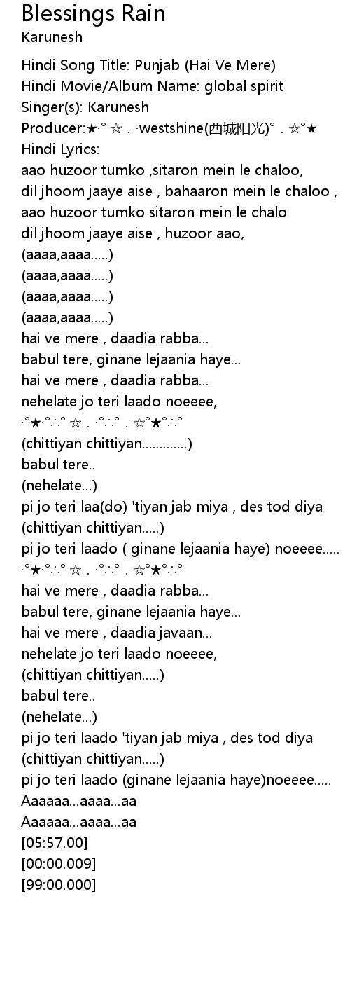 | [00:02.00] | Hindi Song Title: Punjab Hai Ve Mere |