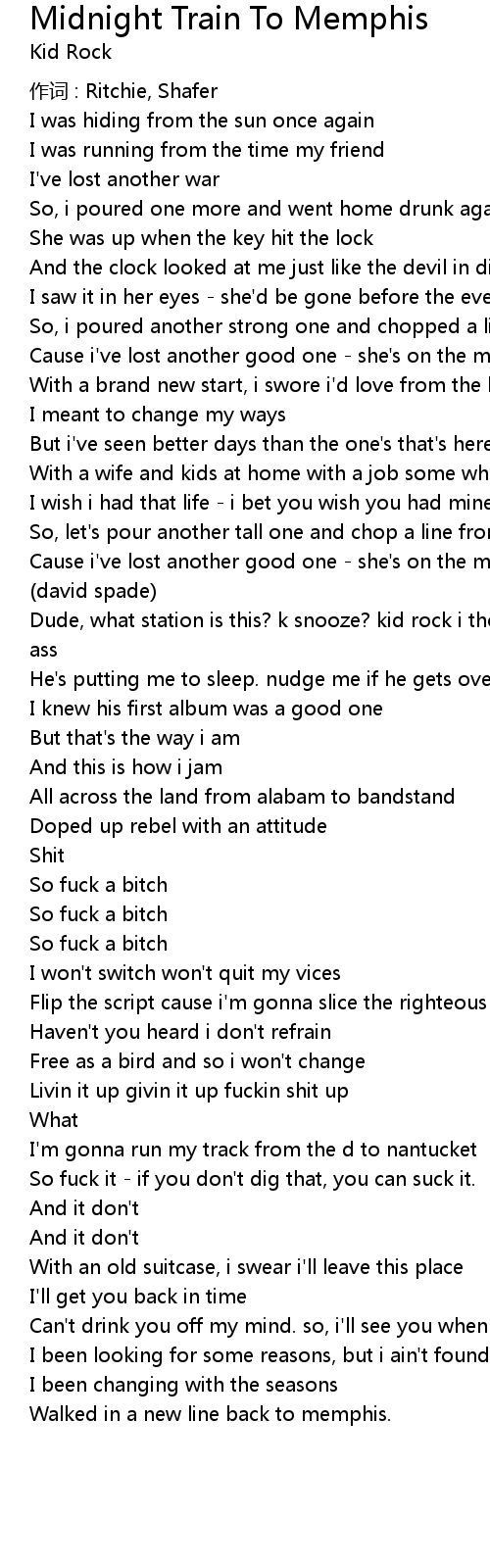 | Cause i' ve lost another good one she' s on the midnight train to memphis | |