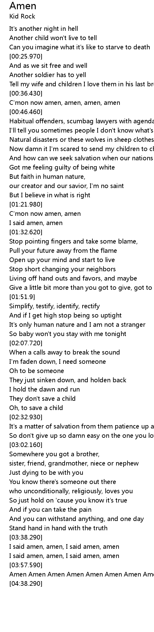 | [00:36.900] | C'mon now amen, amen, amen, amen |