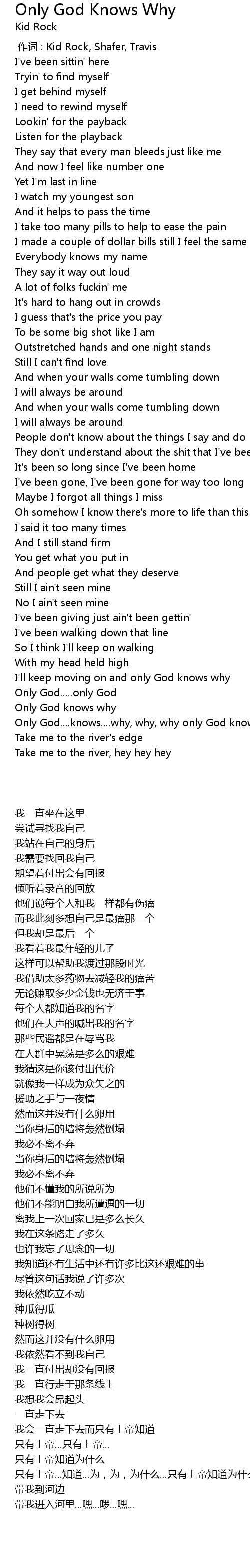 | [00:00.00] | 作词 : Kid Rock, Shafer, Travis |