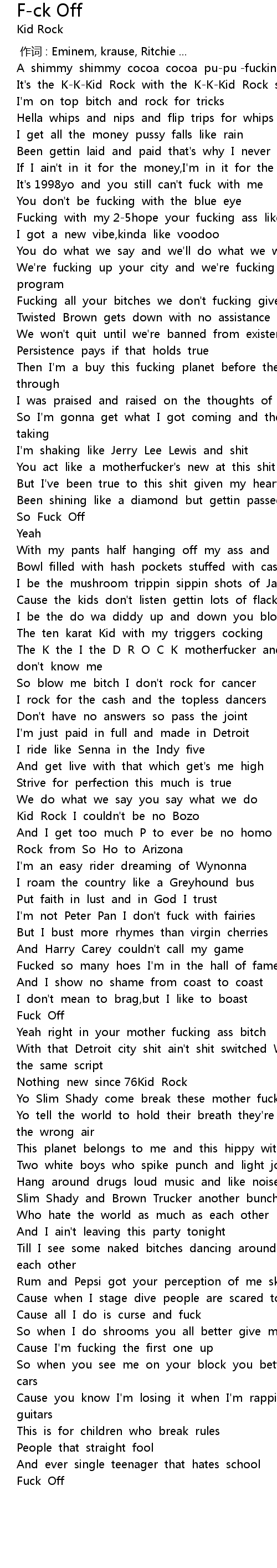 | [00:24.792] | It's the K-K-Kid Rock with the K-K-Kid Rock shit |