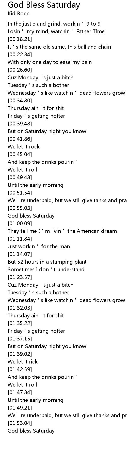 | [01:50.15] | We're underpaid, but we still give thanks and praise |