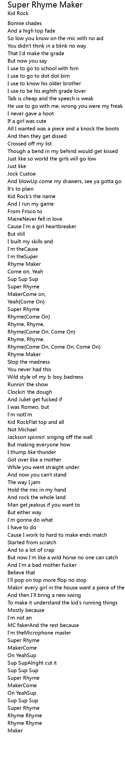 Rhyme(Come On, Come On, Come On) |