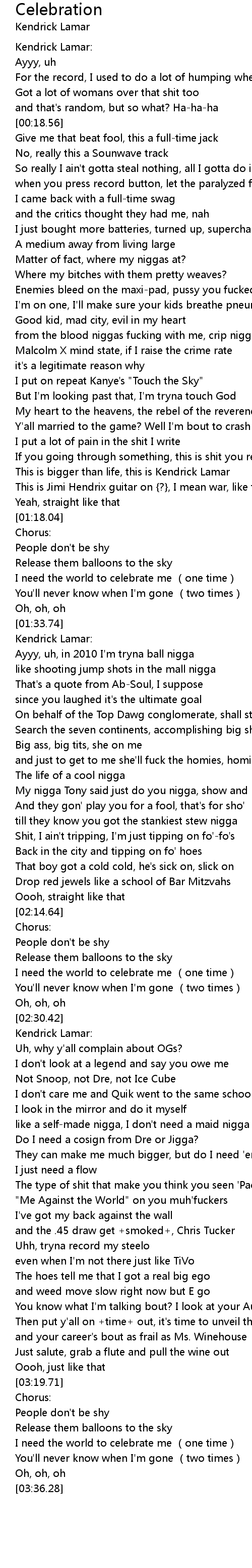 | [03:23.18] | I need the world to celebrate me one time |