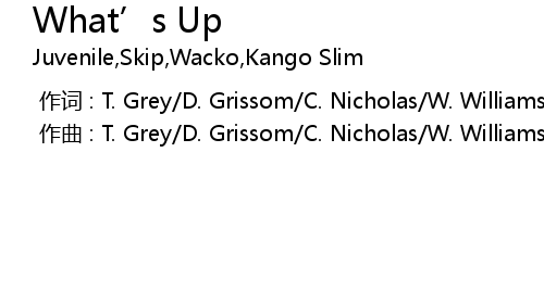 | [00:00.000] | 作曲 : T. Grey/D. Grissom/C. Nicholas/W. Williams/S. Arrington |