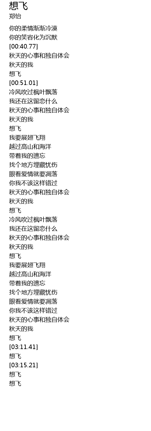 | [03:14.35] | 想飞 |