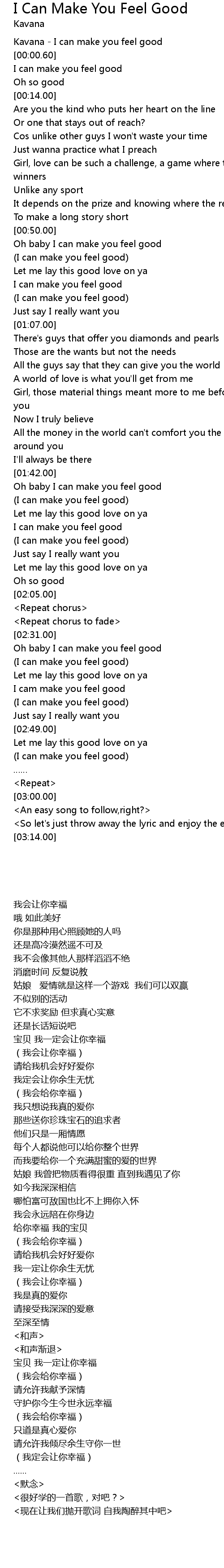 | [00:00.01] | Kavana - I can make you feel good |