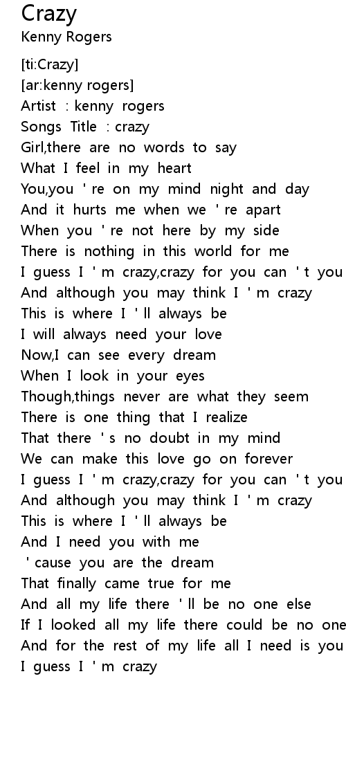 | [00:11.05] | Songs Title : crazy |