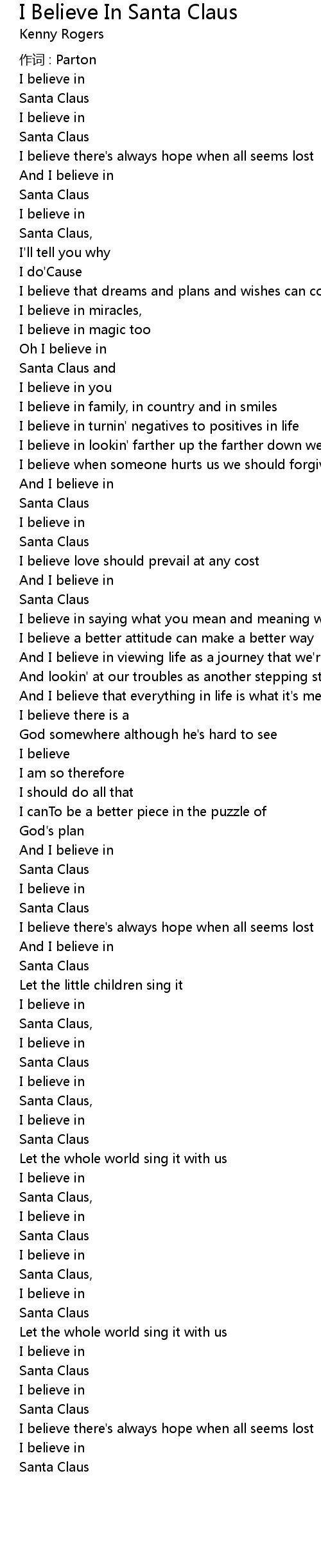 | Song | I Believe In Santa Claus |