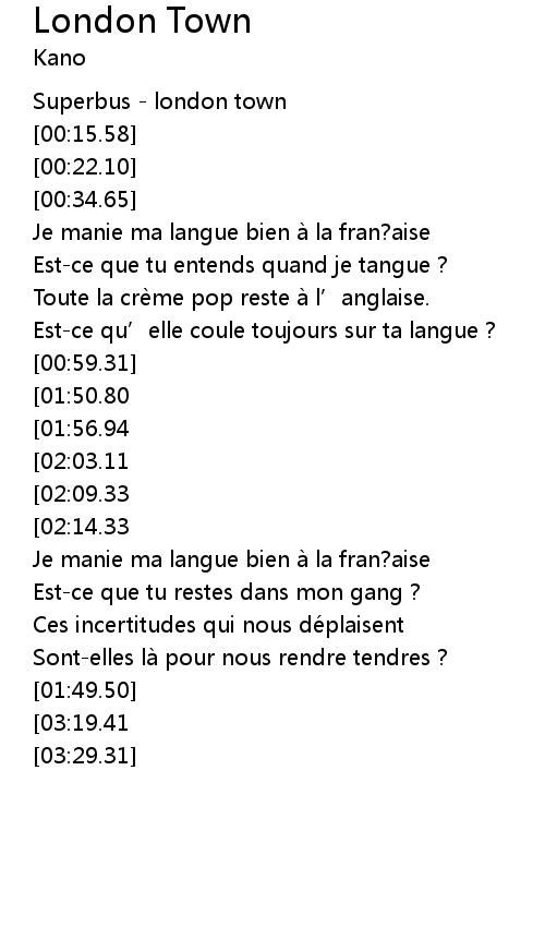 | [00:07.50] | Superbus london town |