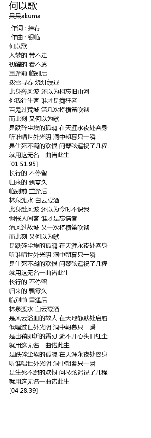 | [00:10.00] | 何以歌 |