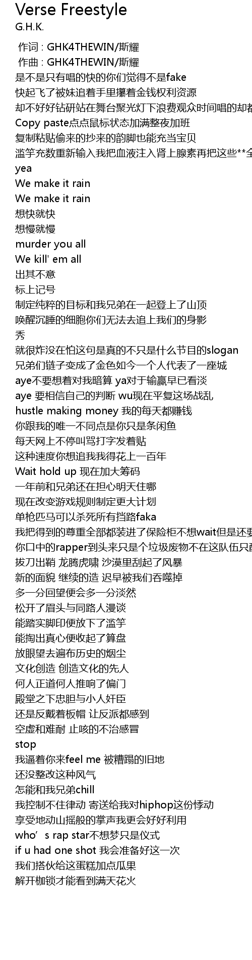| [00:00.000] | 作词 : GHK4THEWIN/斯耀 |