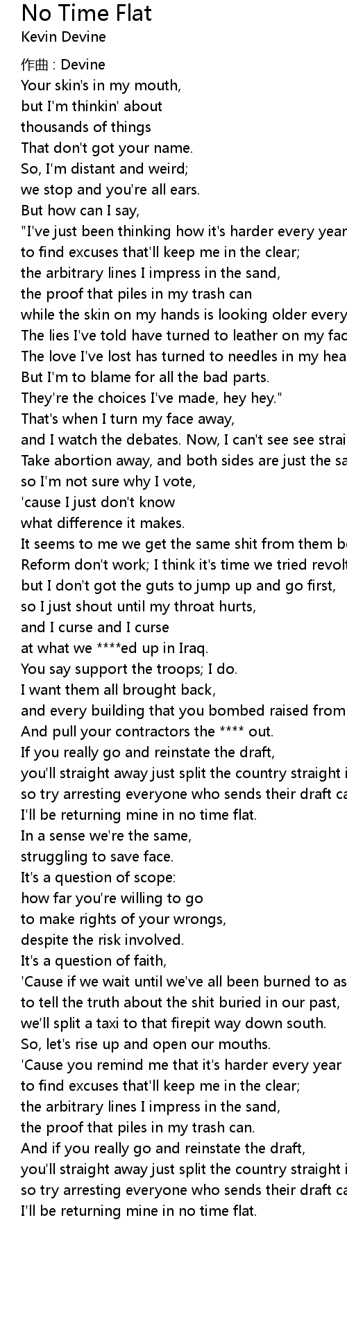 | Song | No Time Flat |