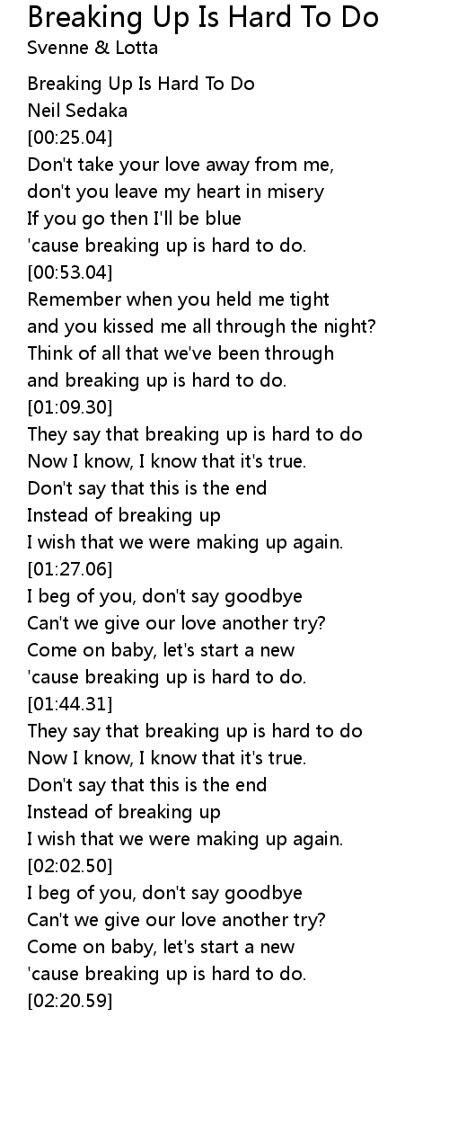 'cause breaking up is hard to do. |