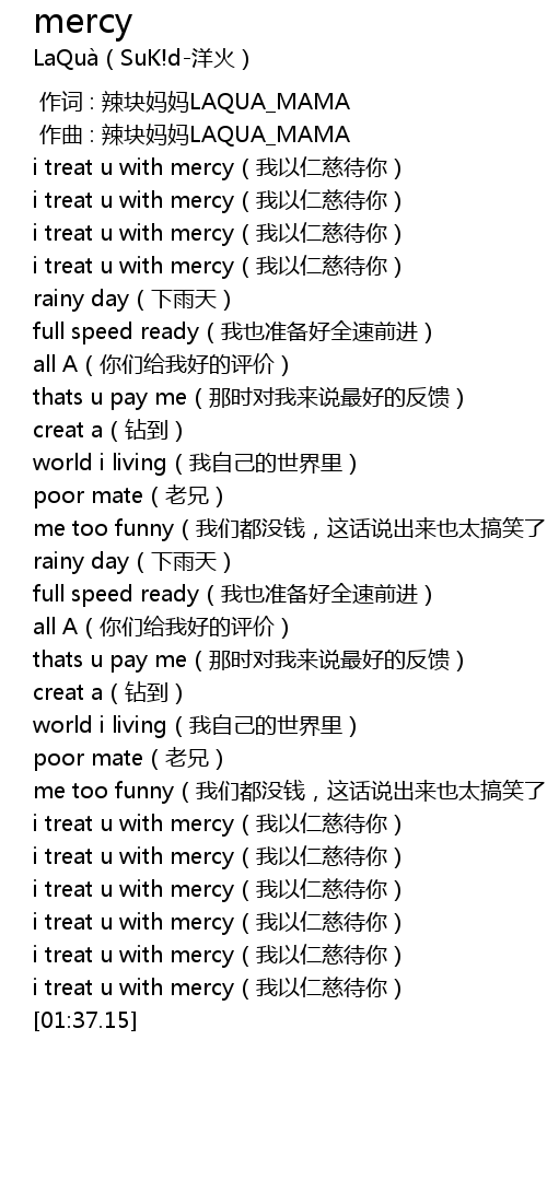 | [01:32.42] | i treat u with mercy(我以仁慈待你) |