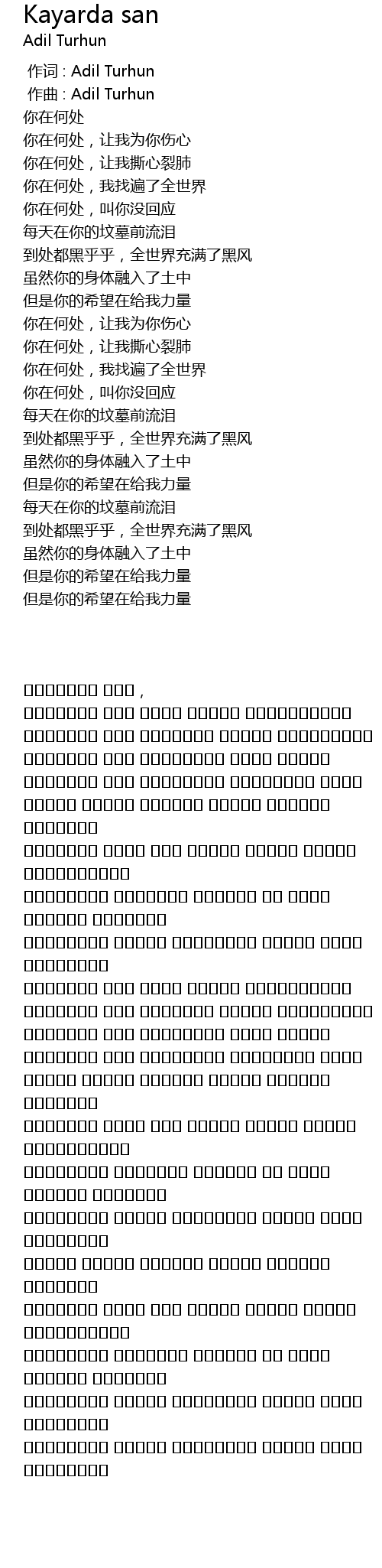 | [00:00.000] | 作词 : Adil Turhun |