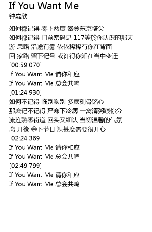 | [00:59.820] | If You Want Me qǐng nǐ hé yīng |