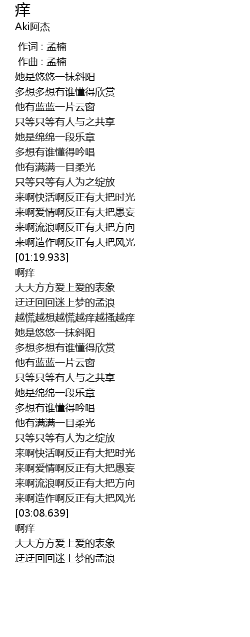 | [01:40.890] | 越慌越想越慌越痒越搔越痒 |