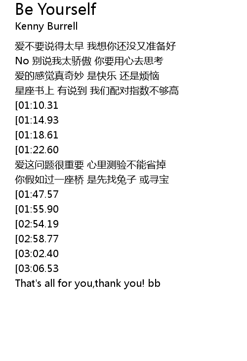 | [03:49.71] | That' s all for you, thank you! bb |