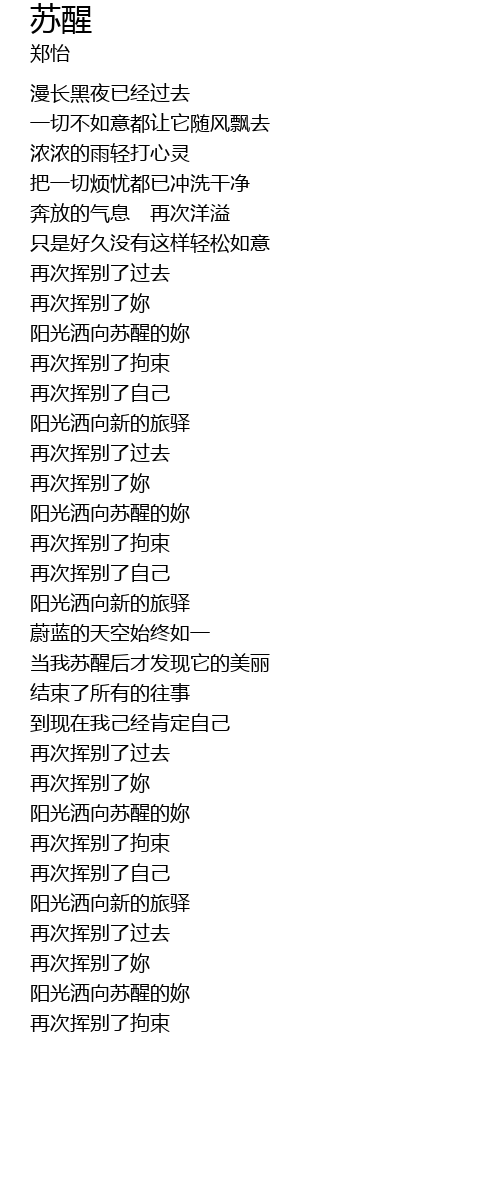 | [00:59.79] | 阳光洒向苏醒的妳 |