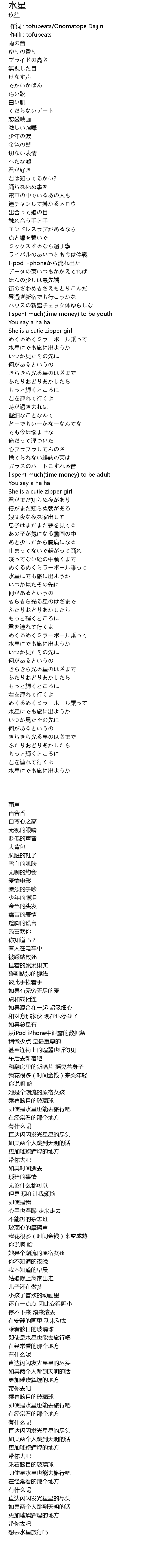 | [00:00.000] | zuo ci : tofubeats Onomatope Daijin |