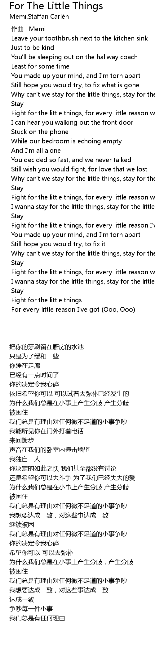 | [02:47.505] | I wanna stay for the little things, stay for the little things |