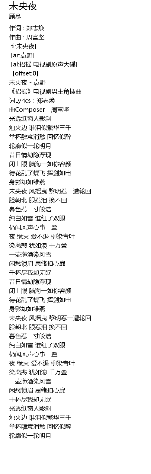 | [00:00.11] | 未央夜 - 袁野 |