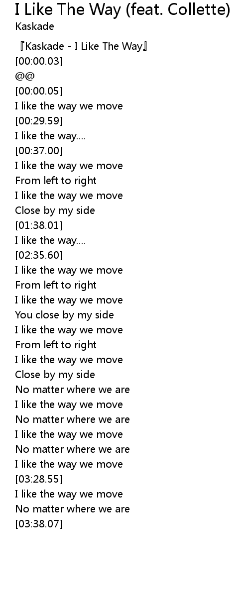 | [00:00.02] | 『Kaskade - I Like The Way』 |