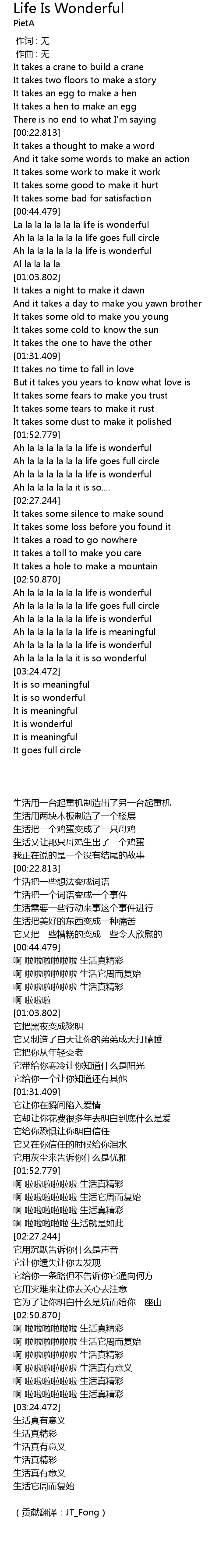 | [03:12.510] | Ah la la la la la la life is wonderful |