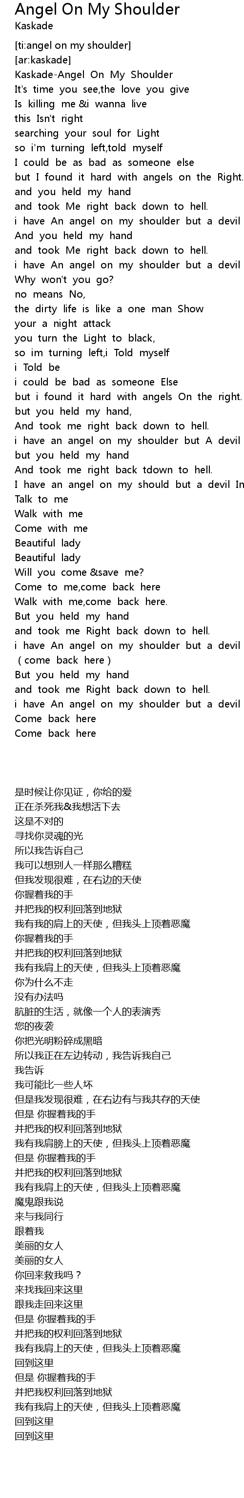 | [00:00.48] | KaskadeAngel On My Shoulder |