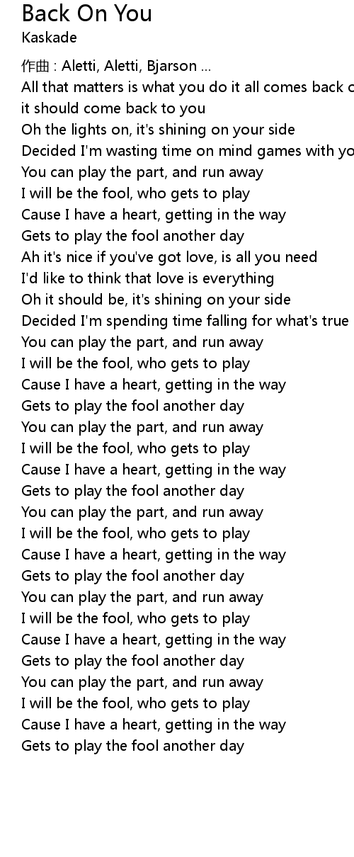 | Song | Back On You |