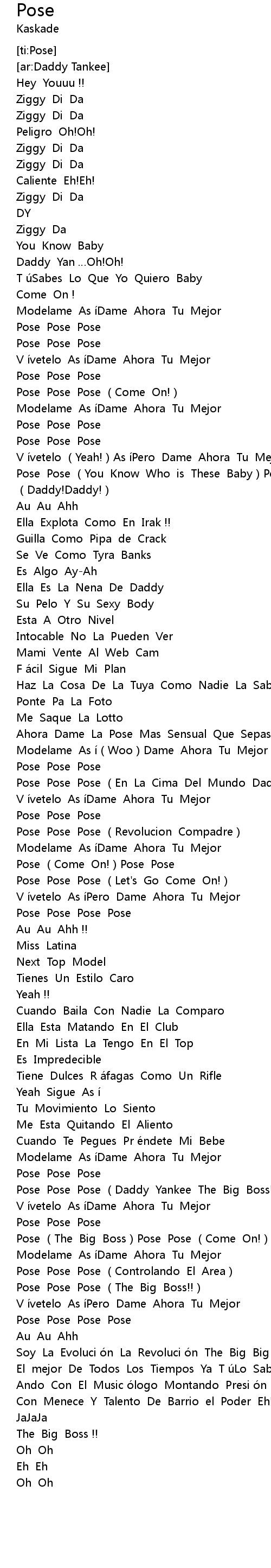 | [02:33.554] | Pose Pose Pose (Daddy Yankee The Big Boss!!) |