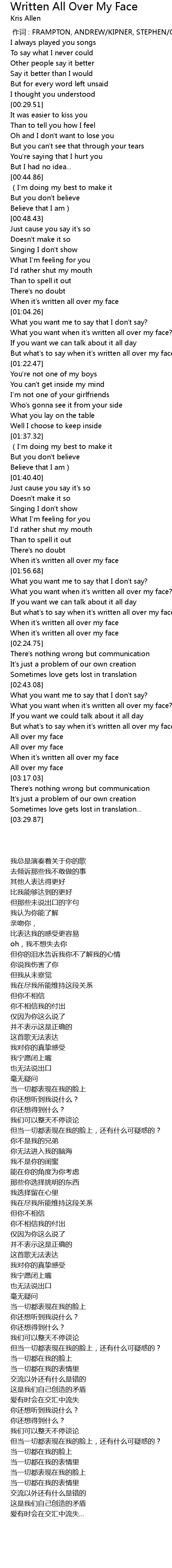 | [01:16.84] | But what' s to say when it' s written all over my face? |