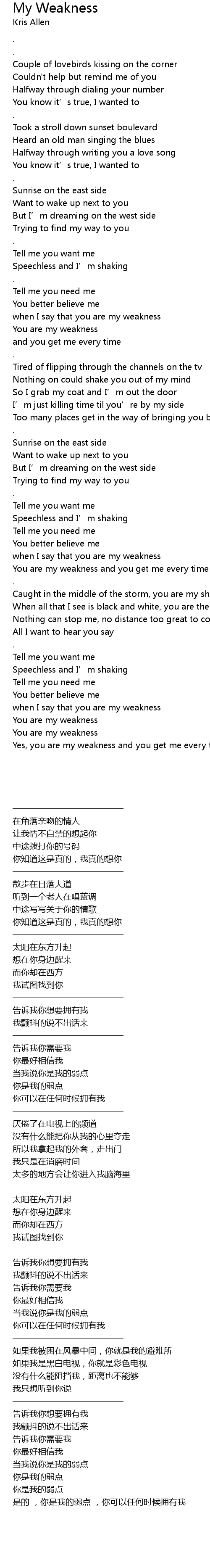 | [02:31.63] | Yes, you are my weakness and you get me every time |