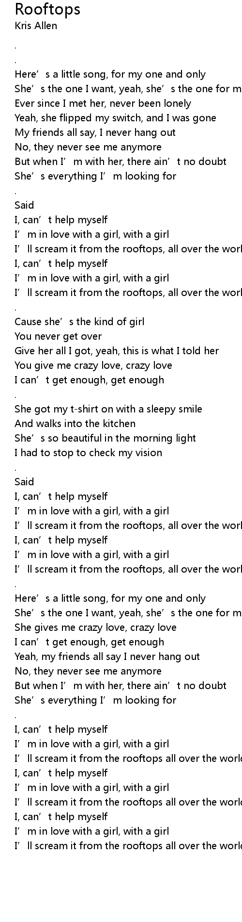 | [00:52.51] | I’ll scream it from the rooftops, all over the world now |