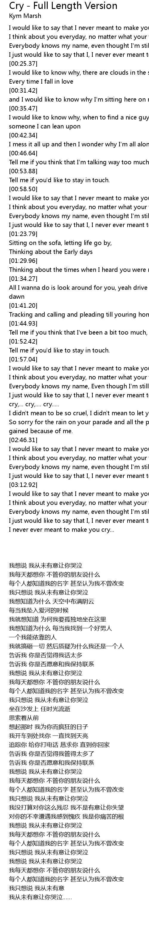 I just would like to say that I, I never ever meant to make you cry,... cry,.... cry..... |