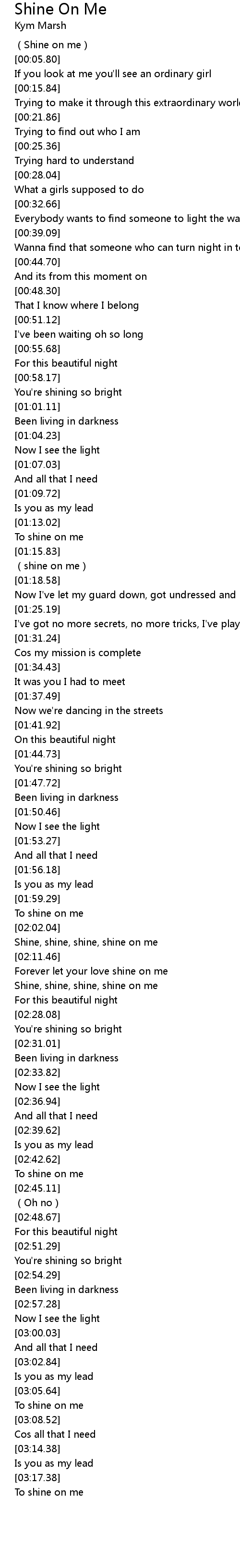 | [02:16.46] | Shine, shine, shine, shine on me |
