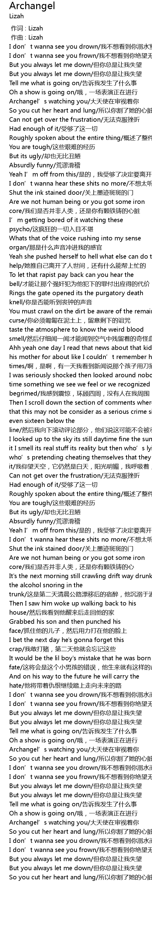 | [03:36.40] | Archangel' s watching you dà tiān shǐ zài shěn shì zhe nǐ |