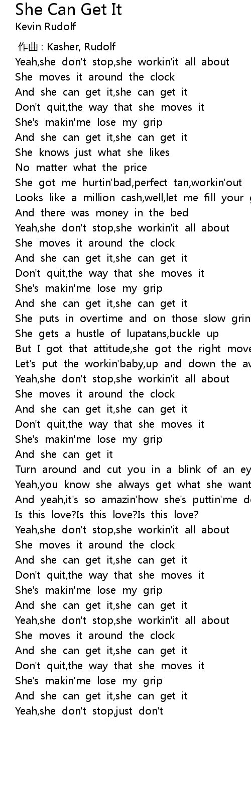| [00:14.38] | And she can get it, she can get it |