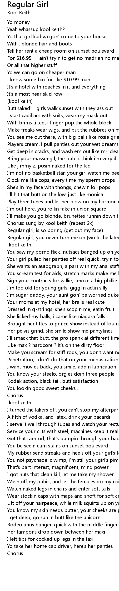 | Regular girl, is so boring (get out my face) | |