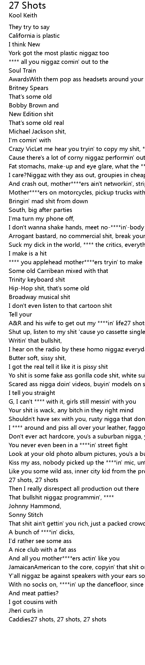 Like you some wild ass, inner city kid from the projects, who's next?27 shots, 27 shots, 27 shots |