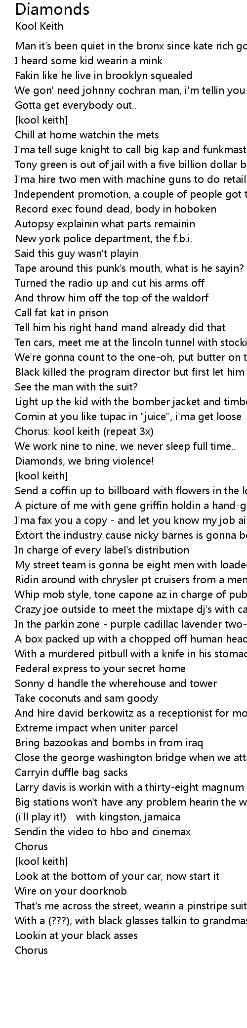 | Chorus: kool keith repeat 3x | |