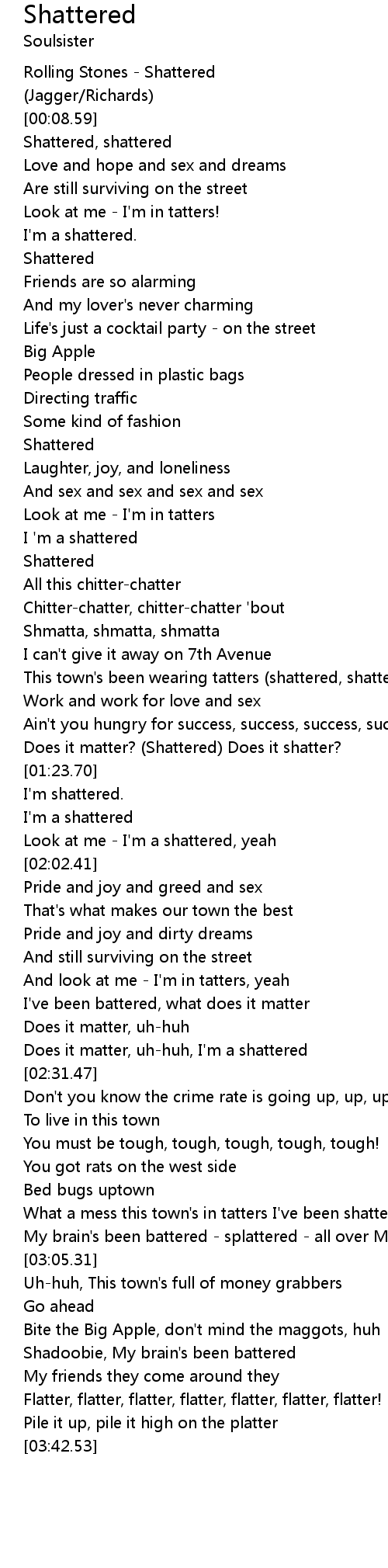[01:15.00] Does it matter? (Shattered) Does it shatter?