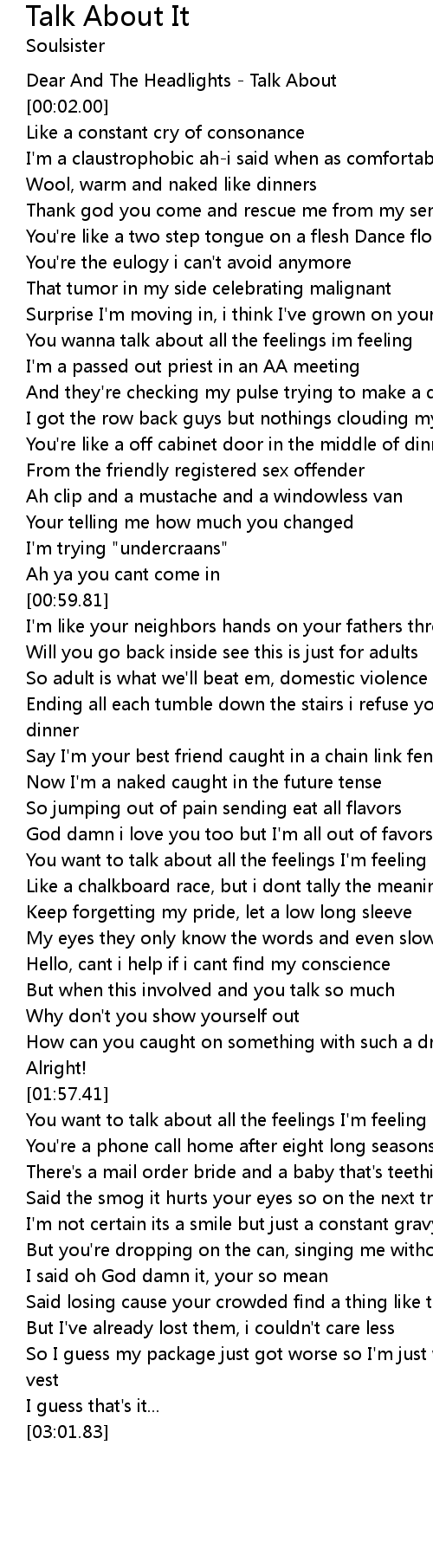 You wanna talk about all the feelings im feeling |