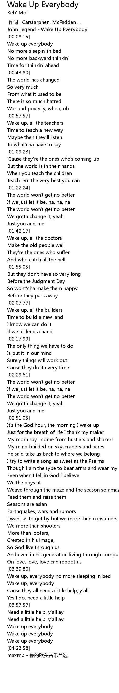 | [00:02.03] | John Legend - Wake Up Everybody |
