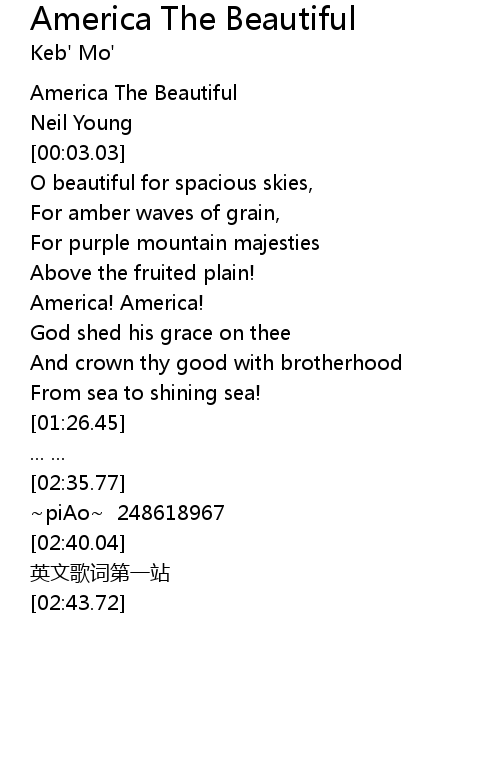 | [00:01.00] | America The Beautiful |